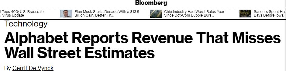 四季度Alphabet营业收入376亿美元,低于分析师预期的384亿美元,当季广告收入同比增长17%,增速低于2018年四季度的20%。