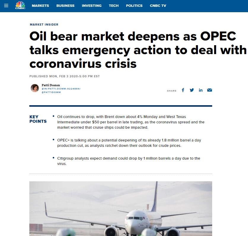 CNBC | OPEC商议为应对新型冠状病毒危机采取紧急行动 油市跌入熊市