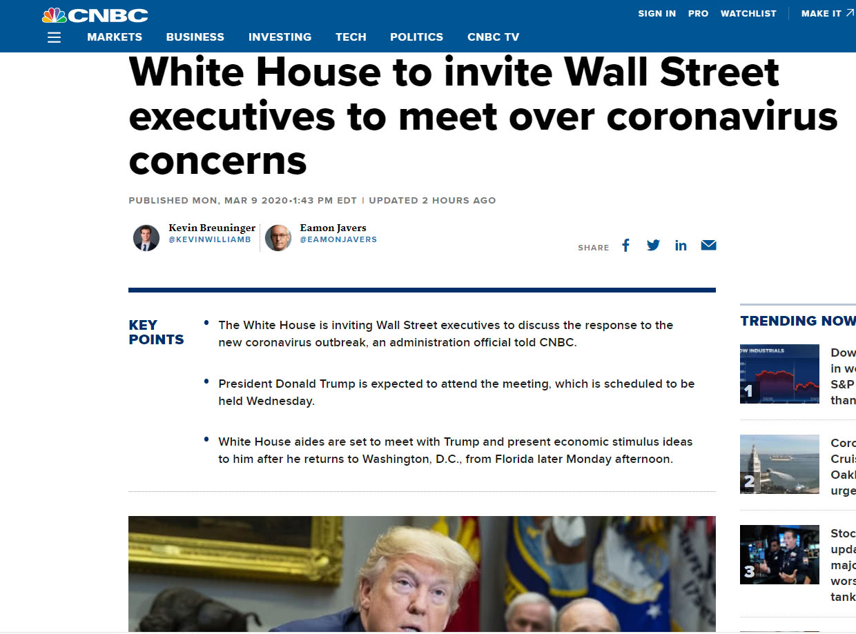 白宫邀请华尔街高管们开会讨论新冠肺炎疫情