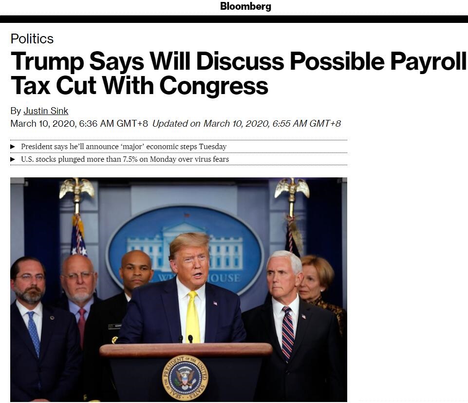 彭博社:特朗普称将与国会讨论可能降低工资税