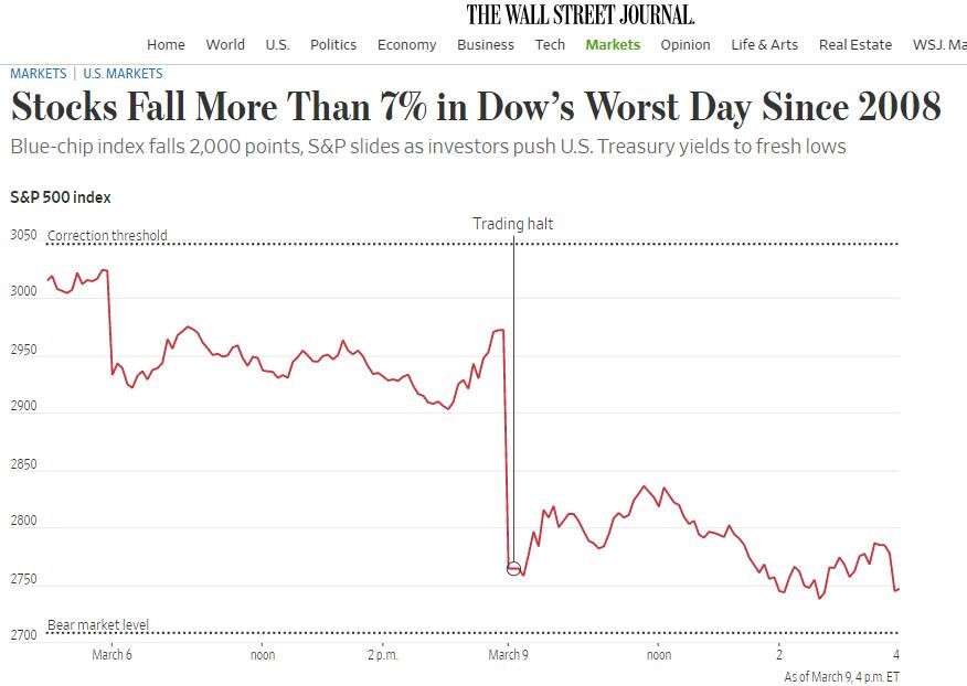 华尔街日报:美股跌超7% 创08年来最大跌幅