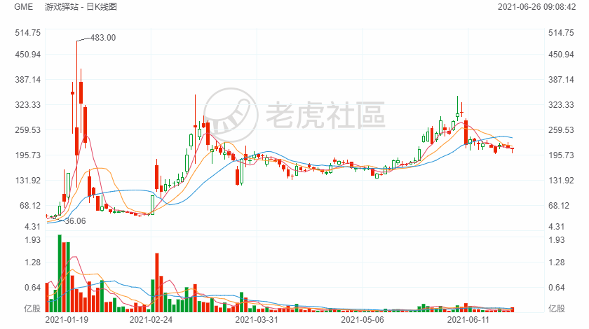 但游戏驿站(Gamestop,NYSE: GME)成长的烦恼却恰恰相反——今年年初,公司估值在散户和机构的“史诗级”交火中被推至前所未有的高度,后几经震荡,目前依旧维持在美股200美元以上的高位。