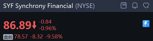 周一,美国信用卡发行商盘前普跌,Synchrony Financial 大跌超9%, 美国运通 跌近4%。 Visa 跌1.65%;同时,大型银行股亦在盘前走低,花旗跌3.57%,摩根大通跌超2%,美国银行跌1.8%,富国银行跌1.5%。