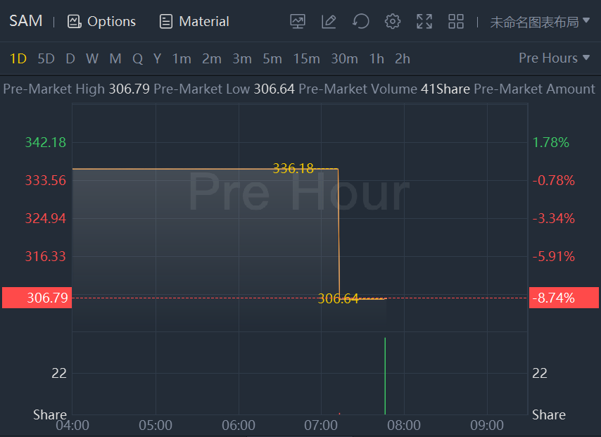 Boston Beer Co. shares dropped more than 8% in premarket trading Friday following the company’s reported Q2 results, with EPS of $4.31 coming in worse than the consensus estimate of $4.79.