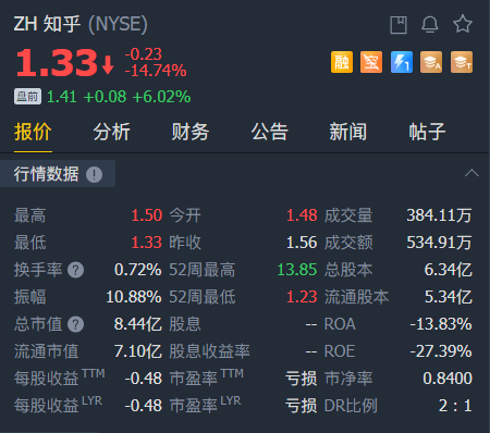 知乎2022年Q1 营收(亿元):7.432,同比增长55.4%。预期:7.26,前值:4.78。