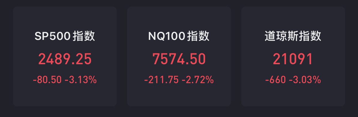 美股三大股指期货震荡下跌,截止发稿,道指期货跌3.03%,标普500指数跌3.13%,纳指期货跌2.72%。