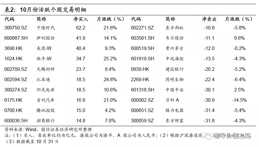 具体来看,10月份外资持仓变化主要存在以下特征: