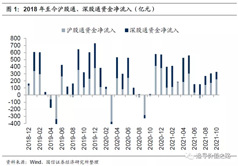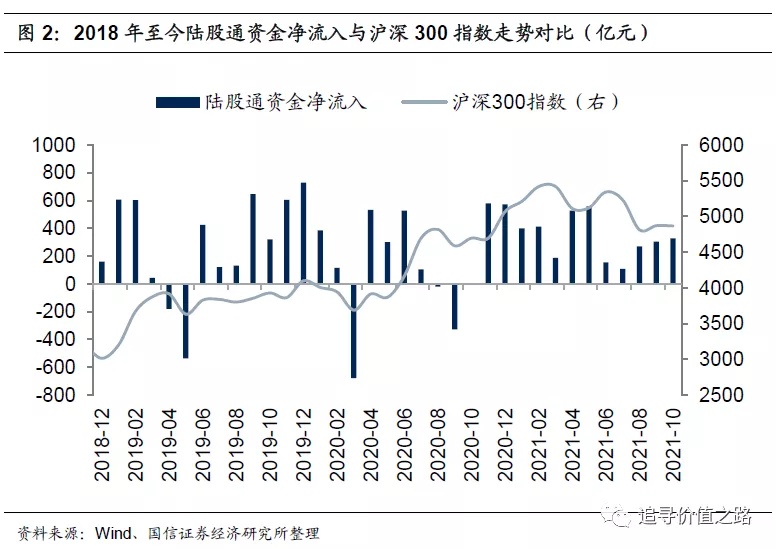 第一,北上资金10月流入规模环比小幅提高,且已连续13个月持续净流入。截至10月31日,陆股通当月累计净流入328.4亿元,其中沪股通当月累计净流入222.7亿元,深股通当月累计净流入105.7亿元。10月份陆股通持股市值占全部A股流通市值比例环比持续上升。