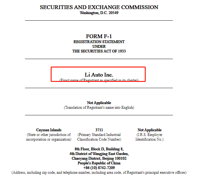 2020年7月10日,来自北京的理想汽车 Li Auto INC.(以下简称“理想汽车”)在美国证监会(SEC)公开其更新后的招股书,拟在纳斯达克上市,股票代码为“LI ”。其一开始是以秘密的方式于2019年12月6日提交。