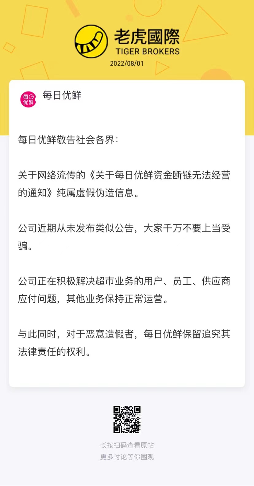 对此,每日优鲜方面表示不属实:公司没有发过相关通知。