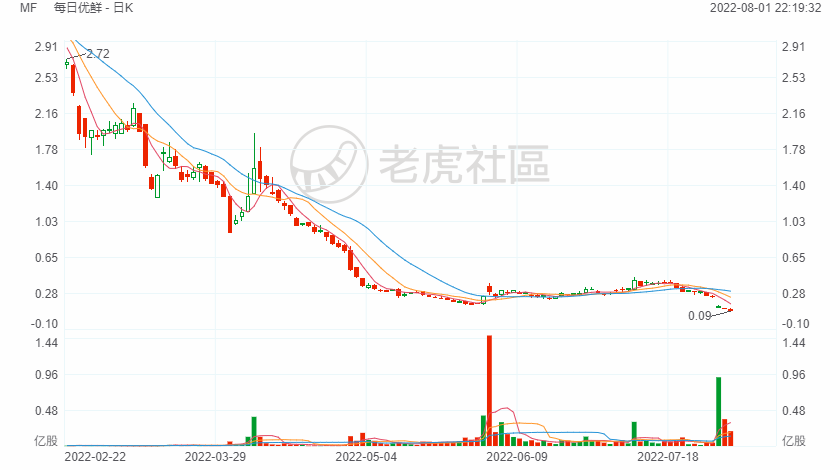 周一,每日优鲜盘中跌超20%,最低报0.09美元每股。公司此前否认“资金断链”的传闻。