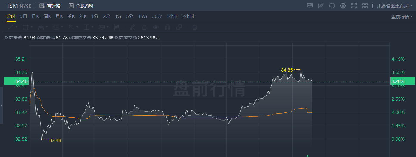 台积电涨超3%。2022年,台积电营收创下2.263万亿元新台币的纪录,同比增长42.6%。而利润增长逾70%,达到1.016万亿元新台币,同样创历史新高。