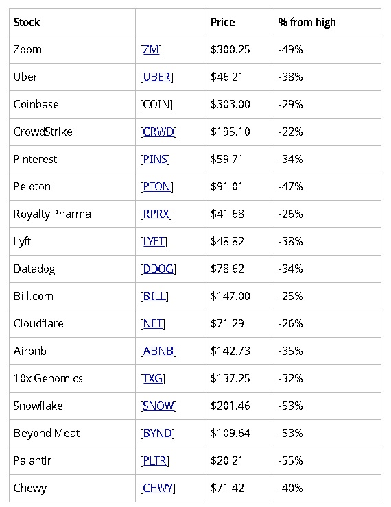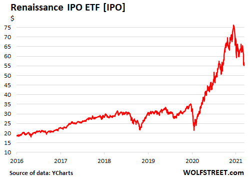 除了SPAC上市的公司外,另外通过传统IPO上市的科创企业也好不到哪去。RenaissanceIPO ETF跟踪的都是在最近两年内上市的创兴型企业,该指数在去年飙涨了252%,但是今年在2月12日盘中高点已经下跌近30%。