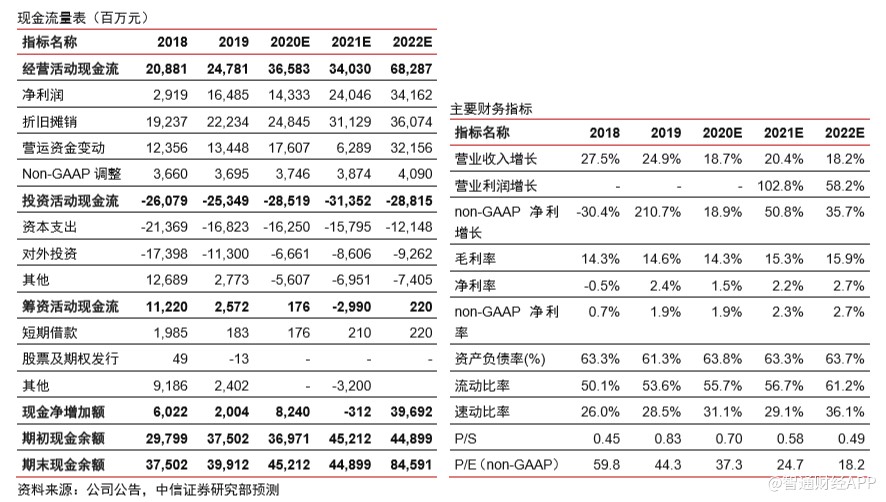 投资建议:把握基本面持续改善机会。我们维持前期观点,除去公共卫生事件带来的扰动,历经2019年的内部调整后,京东品质电商的定位契合行业低线升级的增长主线,料未来两年依然处于基本面边际向上周期。考虑公共卫生事件冲击,我们下调2020-2021年营收预测为6849/8245亿元(原预测为6920/8304亿元),下调non-GAAP净利润预测为127.8/192.8亿元(原预测为137.1/182.7亿元);新增2022年营收/non-GAAP净利润预测为9746/261.7亿元。考虑公共卫生事件下京东相对行业的强势表现和竞争格局改善,维持53.1美元/ADS目标价,维持“买入”评级。