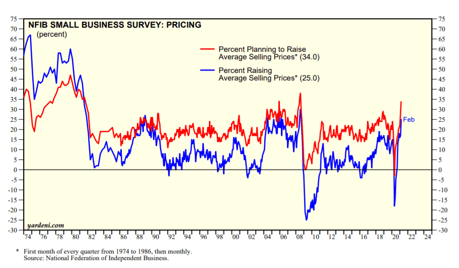 Also, recent survey data shows a dramatic rise in expectations among small business owners to raise prices.