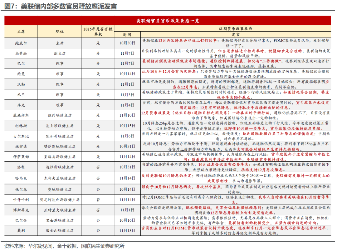 因此,9月就业数据虽然“喜忧参半”,但整体还算相对平稳。至少做到了“有好消息也有坏消息”,使得“鸽”派和“鹰”派都有充足的论据支持,因此短期内不太能缓解美联储内部对于降息的分歧。但考虑到后续缺乏完整的官方经济数据,11月报告将延迟至12月16日发布,晚于FOMC会议时间,而美联储在9月和10月已经连续降息,12月再次降息的决策变得更加困难。