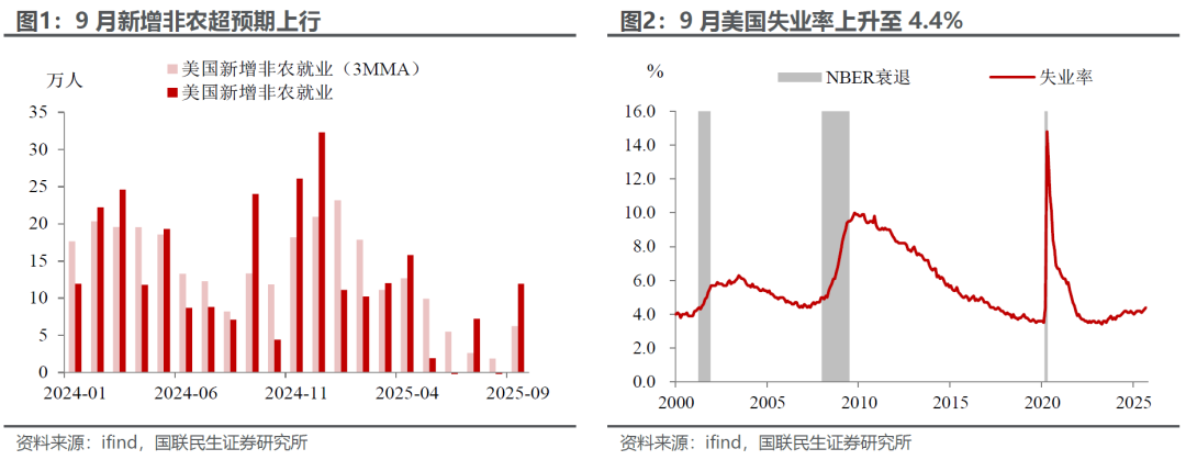 我们认为,9月数据并未给出一致且明确的政策信号:超预期上行的新增非农和失业率互相矛盾,给了市场充分的解读空间,甚至可能进一步加剧了联储内部的分歧。随着宏观信息的逐步回归,利率逐步逼近点阵图终点(3.5%左右),后续联储的降息决策会更加犹豫,如果没有政治力量的干预,停止降息进入观察基本面变化似乎是合理的。