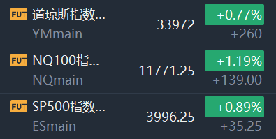 11月11日,美股指期货持续拉升,截止发稿,道指期货涨0.77%,纳指期货涨1.19%,标普500指数期货涨0.89%。
