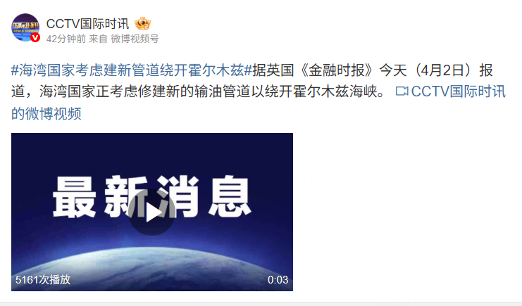 {"i18n":{"language":"zh_CN"},"isChannel":false,"data":{"share":"https://www.laohu8.com/m/news/1151747340?lang=zh_CN&edition=full","thumbnail":"https://community-static.tradeup.com/news/5506e2441ee7a0d7c1220f32bf31b038","is_english":false,"pubTime":"2026-04-02 12:51","share_image_url":"https://static.laohu8.com/e9f99090a1c2ed51c021029395664489","id":"1151747340","market":"us","top_or_hot":-1,"title":"海湾国家考虑建新管道绕开霍尔木兹","media":"CCTV国际时讯","content":"<html><head></head><body><p>据英国《金融时报》今天(4月2日)报道,海湾国家正考虑修建新的输油管道以绕开霍尔木兹海峡。</p><p class=\"t-img-caption\"><img src=\"https://community-static.tradeup.com/news/b13b1fa18504a1c87298d20052b4f217\" title=\"\" tg-width=\"741\" tg-height=\"435\"/></p><hr/><p>美油现升近5%至105美元/桶; <a href=\"https://laohu8.com/S/USO\">美国原油ETF</a> 夜盘升逾5%至131美元。</p><p class=\"t-img-caption\"><img src=\"https://static.tigerbbs.com/c342f8d5f64292a1638499fca9e2bbcf\" title=\"\" tg-width=\"532\" tg-height=\"130\"/></p><p></p></body></html>","source":"lsy1721357159105","html":"<!DOCTYPE html>\n<html>\n<head>\n<meta http-equiv=\"Content-Type\" content=\"text/html; charset=utf-8\" />\n<meta name=\"viewport\" content=\"width=device-width,initial-scale=1.0,minimum-scale=1.0,maximum-scale=1.0,user-scalable=no\"/>\n<meta name=\"format-detection\" content=\"telephone=no,email=no,address=no\" />\n<title>海湾国家考虑建新管道绕开霍尔木兹</title>\n<style type=\"text/css\">\na,abbr,acronym,address,applet,article,aside,audio,b,big,blockquote,body,canvas,caption,center,cite,code,dd,del,details,dfn,div,dl,dt,\nem,embed,fieldset,figcaption,figure,footer,form,h1,h2,h3,h4,h5,h6,header,hgroup,html,i,iframe,img,ins,kbd,label,legend,li,mark,menu,nav,\nobject,ol,output,p,pre,q,ruby,s,samp,section,small,span,strike,strong,sub,summary,sup,table,tbody,td,tfoot,th,thead,time,tr,tt,u,ul,var,video{ font:inherit;margin:0;padding:0;vertical-align:baseline;border:0 }\nbody{ font-size:16px; line-height:1.5; color:#999; background:transparent; }\n.wrapper{ overflow:hidden;word-break:break-all;padding:10px; }\nh1,h2{ font-weight:normal; line-height:1.35; margin-bottom:.6em; }\nh3,h4,h5,h6{ line-height:1.35; margin-bottom:1em; }\nh1{ font-size:24px; }\nh2{ font-size:20px; }\nh3{ font-size:18px; }\nh4{ font-size:16px; }\nh5{ font-size:14px; }\nh6{ font-size:12px; }\np,ul,ol,blockquote,dl,table{ margin:1.2em 0; }\nul,ol{ margin-left:2em; }\nul{ list-style:disc; }\nol{ list-style:decimal; }\nli,li p{ margin:10px 0;}\nimg{ max-width:100%;display:block;margin:0 auto 1em; }\nblockquote{ color:#B5B2B1; border-left:3px solid #aaa; padding:1em; }\nstrong,b{font-weight:bold;}\nem,i{font-style:italic;}\ntable{ width:100%;border-collapse:collapse;border-spacing:1px;margin:1em 0;font-size:.9em; }\nth,td{ padding:5px;text-align:left;border:1px solid #aaa; }\nth{ font-weight:bold;background:#5d5d5d; }\n.symbol-link{font-weight:bold;}\n/* header{ border-bottom:1px solid #494756; } */\n.title{ margin:0 0 8px;line-height:1.3;color:#ddd; }\n.meta {color:#5e5c6d;font-size:13px;margin:0 0 .5em; }\na{text-decoration:none; color:#2a4b87;}\n.meta .head { display: inline-block; overflow: hidden}\n.head .h-thumb { width: 30px; height: 30px; margin: 0; padding: 0; border-radius: 50%; float: left;}\n.head .h-content { margin: 0; padding: 0 0 0 9px; float: left;}\n.head .h-name {font-size: 13px; color: #eee; margin: 0;}\n.head .h-time {font-size: 11px; color: #7E829C; margin: 0;line-height: 11px;}\n.small {font-size: 12.5px; display: inline-block; transform: scale(0.9); -webkit-transform: scale(0.9); transform-origin: left; -webkit-transform-origin: left;}\n.smaller {font-size: 12.5px; display: inline-block; transform: scale(0.8); -webkit-transform: scale(0.8); transform-origin: left; -webkit-transform-origin: left;}\n.bt-text {font-size: 12px;margin: 1.5em 0 0 0}\n.bt-text p {margin: 0}\n</style>\n</head>\n<body>\n<div class=\"wrapper\">\n<header>\n<h2 class=\"title\">\n海湾国家考虑建新管道绕开霍尔木兹\n</h2>\n\n<h4 class=\"meta\">\n\n\n2026-04-02 12:51 北京时间 <a href=https://m.weibo.cn/detail/5283227126203565><strong>CCTV国际时讯</strong></a>\n\n\n</h4>\n\n</header>\n<article>\n<div>\n<p>据英国《金融时报》今天(4月2日)报道,海湾国家正考虑修建新的输油管道以绕开霍尔木兹海峡。美油现升近5%至105美元/桶; 美国原油ETF 夜盘升逾5%至131美元。</p>\n\n<a href=\"https://m.weibo.cn/detail/5283227126203565\">网页链接</a>\n\n</div>\n\n\n</article>\n</div>\n</body>\n</html>\n","isBrief":false,"type":0,"news_type":1,"symbol":"USO","symbol_name":"美国原油ETF","start_time":0,"source_url":"https://m.weibo.cn/detail/5283227126203565","article_id":"1151747340","we_media_id":null,"thumbnails":["https://community-static.tradeup.com/news/5506e2441ee7a0d7c1220f32bf31b038"],"rights":null,"url":"https://stock-news.laohu8.com/highlight/detail?id=1151747340","pubTimestamp":1775105511,"columns":[],"sourceInfo":{"source_id":"lsy1721357159105","name":"CCTV国际时讯"},"weMediaInfo":null,"summary":"据英国《金融时报》今天(4月2日)报道,海湾国家正考虑修建新的输油管道以绕开霍尔木兹海峡。","collect":0,"end_time":0,"defaultTopTitle":"weibo.cn","property":[],"viewcount":null,"language":"zh","relate_stocks":{"USO":"美国原油ETF"},"translate_title":"Gulf states consider new pipeline to bypass Hormuz","themeId":"ebc029eba6e8a69656ce6632aad2a743","isJumpTheme":false,"ttsUrl":"https://static.tigerbbs.com/da8757e7a213ddf6e4fb4440cb781a65","symbols_score_info":{"USO":2,"QMmain":2,"CLmain":2},"content_text":"据英国《金融时报》今天(4月2日)报道,海湾国家正考虑修建新的输油管道以绕开霍尔木兹海峡。美油现升近5%至105美元/桶; 美国原油ETF 夜盘升逾5%至131美元。","kind":"news","is_publish_news":true,"is_publish_highlight":true,"is_publis