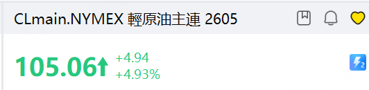 美油现升近5%至105美元/桶;