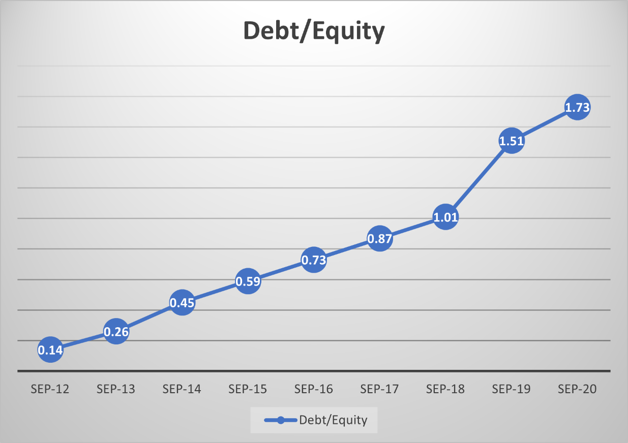 - Consistent growth in revenue, net income, free cash flow, but with high debt levels on the balance sheet.