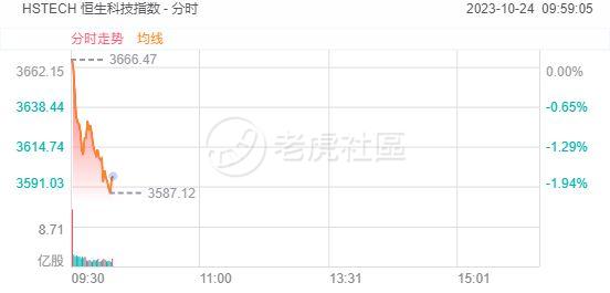 10月24日,港股持续下探,恒生科技指数跌超2%,恒指跌1.7%,