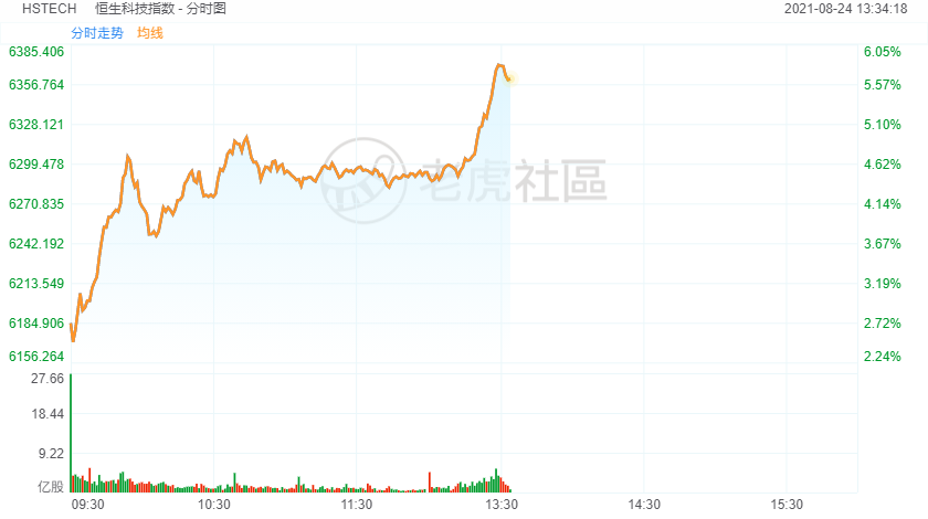 周二午后,恒生科技指数大涨近6%。