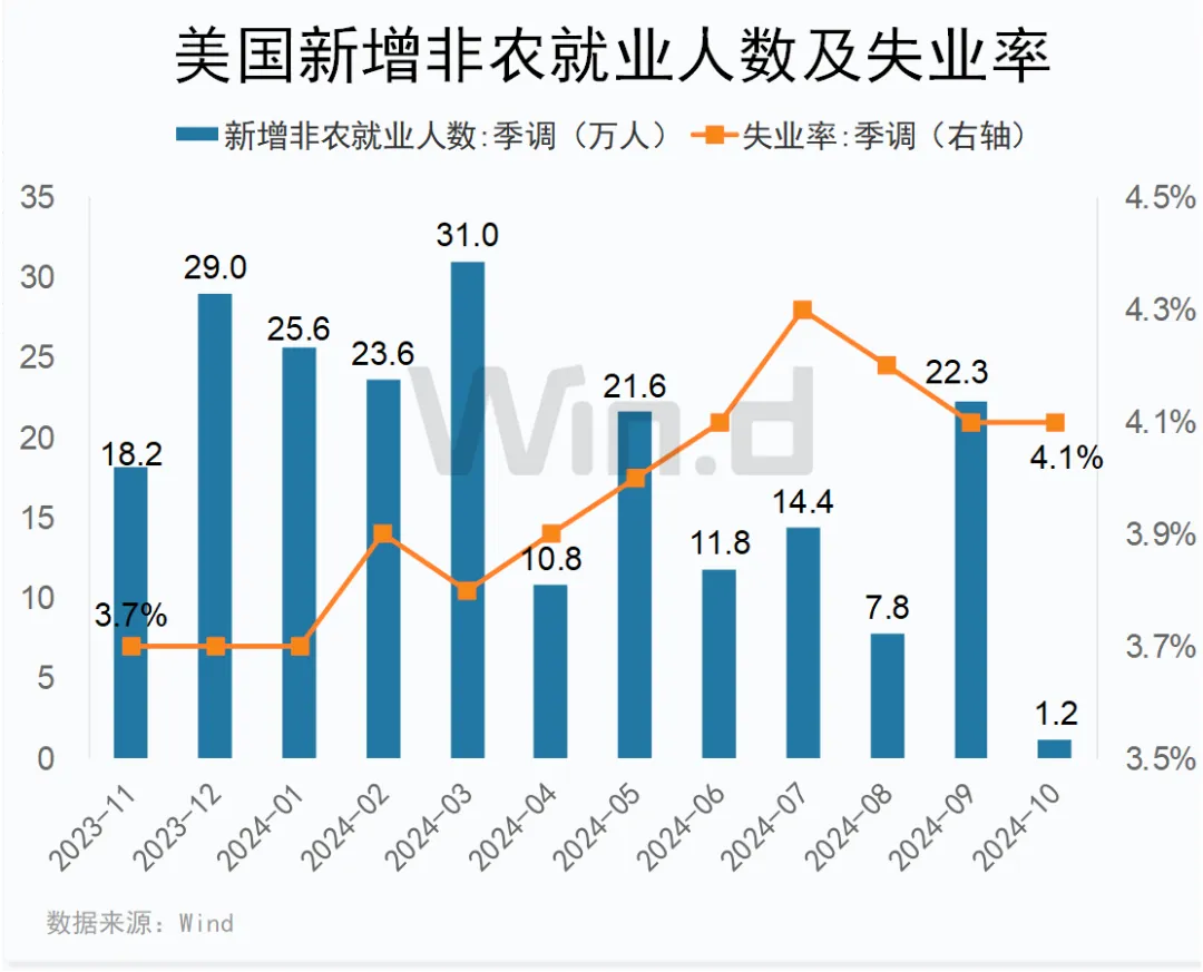 就业数据方面,美国10月非农新增就业人数骤降至1.2万人,远低于预期,同时还下修8月、9月的非农就业人数,合计下修11.2万人。