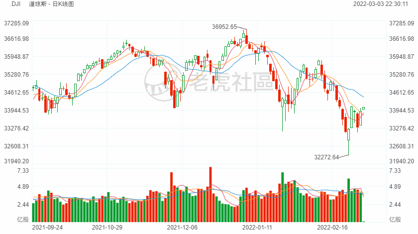 3月3日,第二轮俄乌谈判即将开始,美股三大指数集体高开,道指涨0.50%,纳指涨0.62%,标普500指数涨0.55%。