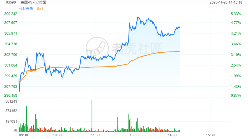 11月26日讯,美团午后$(03690)$涨超4%,报307港元,市值达1.80万亿港元,将于下周一公布最新业绩。美团Q3财报前瞻:再次加速增长,市值将超两万亿?