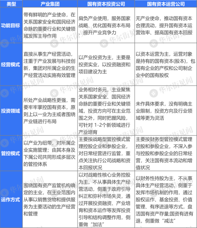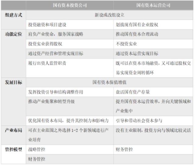 总体来看,国有资本运营公司本身不从事具体生产经营活动,也不承担产业发展使命;国有资本投资公司本身不从事具体生产经营活动,承担产业发展使命;产业集团本身从事具体生产经营活动,承担产业发展使命。
