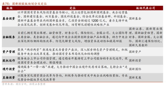 截至目前,国新控股已打造形成基金投资、金融服务、股权运作、资产管理、境外投资、直接投资六个业务板块。