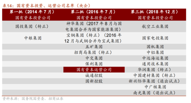 国有资本投资公司、国有资本运营公司和产业集团
