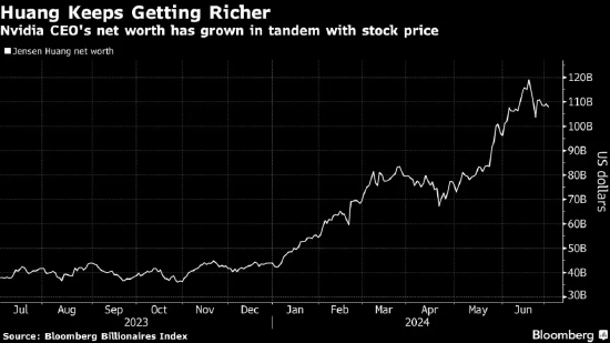 这是他今年首次出售130万股股票,而在这个月,英伟达的市值首次突破3万亿美元。这一度使其成为世界上最有价值的公司,并使61岁的黄仁勋成为少数财富超过1000亿美元的超级富豪。
