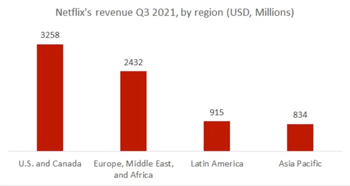 Figure 5: Netflix's revenue Q3 2021, by region.