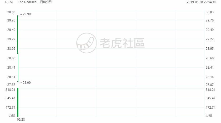 6月28日周五,美国二手奢侈品平台The RealReal$(REAL)$登陆纳斯达克,开盘报28美元,随后一路拉升,截至发稿,大涨近50%,最高见29.99美元。