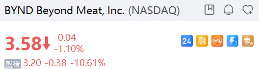 周三收盘时,Beyond Meat的股价为3.58美元,盘后大跌10%。