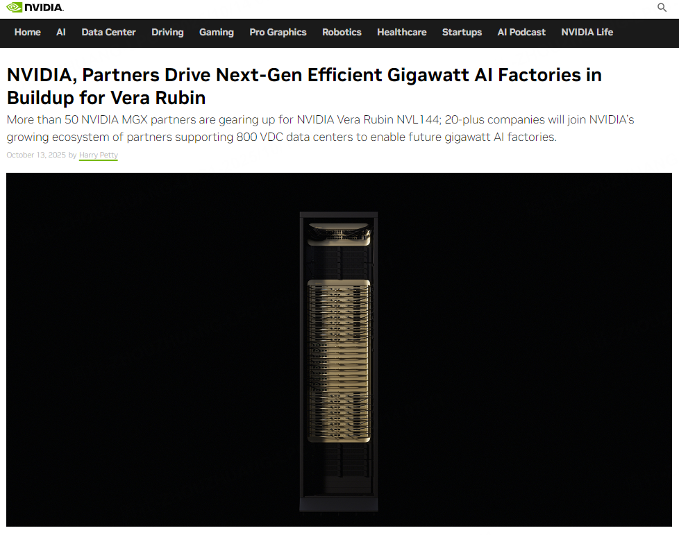 10月14日,英伟达正式公布NVIDIA Vera Rubin NVL144这一MGX代际开放式架构机架服务器的技术规格。此外,目前已有50余家MGX合作伙伴正为该产品做准备,同时还将为英伟达Kyber提供生态支持。
