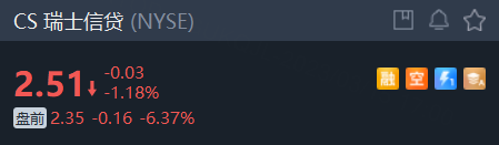 瑞士信贷盘前下挫,截至发稿跌超6%。沙特国家银行行长表示绝对不会向瑞士信贷提供更多援助。沙特国家银行是瑞信筹资过程中的基石投资者,持有瑞信的9.9%股权,为其最大股东。