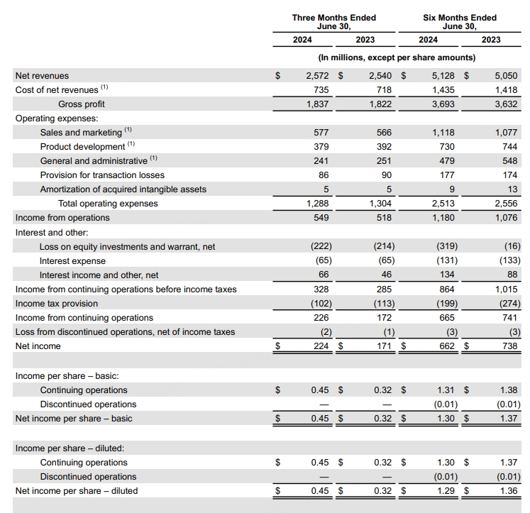 8月1日,eBay发布2024年第二季度业绩。财报显示,第二季度营收26亿美元,市场预期25.3亿美元,去年同期25.4亿美元;净利润2.24亿美元,市场预期4.21亿美元,去年同期1.71亿美元;每股收益0.45美元,市场预期0.8美元,去年同期0.32美元。