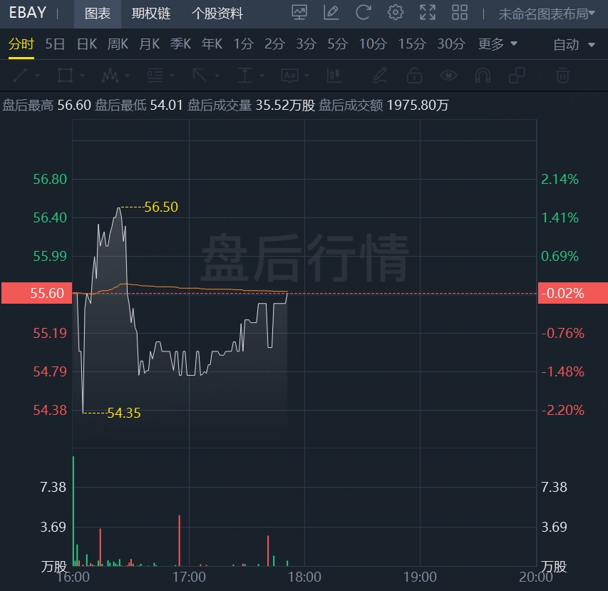 财报发布后,eBay盘后一度上涨逾1.5%,随后转跌。