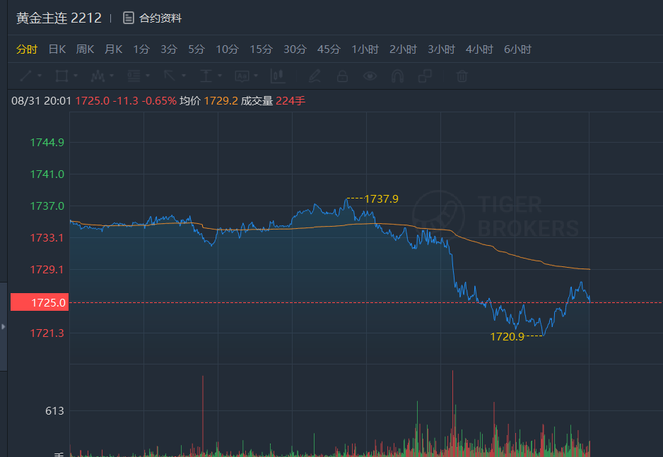 国际金价震荡走低。好于预期的美国经济数据和美联储官员的强硬表态暗示,利率将进一步上升,尽管围绕美联储9月份加息幅度的争论仍在继续。