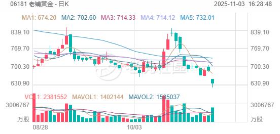 黄金零售品牌商集体重挫,周大福跌超8%,老铺黄金跌超7%,六福集团跌近7%,周生生跌超6%,中国黄金国际跌超2%;