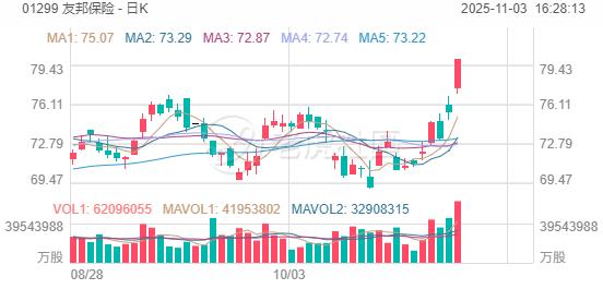 友邦保险涨近6%,第三季度新业务价值按实际汇率增长27%至14.8亿美元,大幅超出预期且跑赢同业;