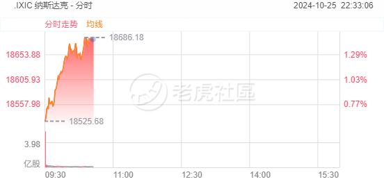 10月25日,纳指盘中再创历史新高,涨幅扩大至1.4%;大型科技股集体走高,