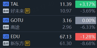 财报发布后,新东方美股盘前大跌逾8%,其他中概教育股被带崩,高途跌超6%,好未来跌近4%。