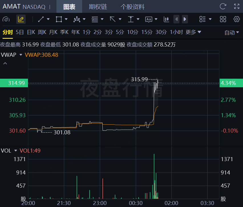 财报发布后,美股半导体设备股夜盘集体拉升,阿斯麦涨超5%,台积电、应用材料、泛林集团涨超4%!