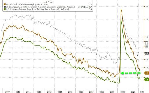 失业率继续改善,2月失业率录得3.8%,好于市场预期的3.9%,为2020年2月来新低,前值为4%。