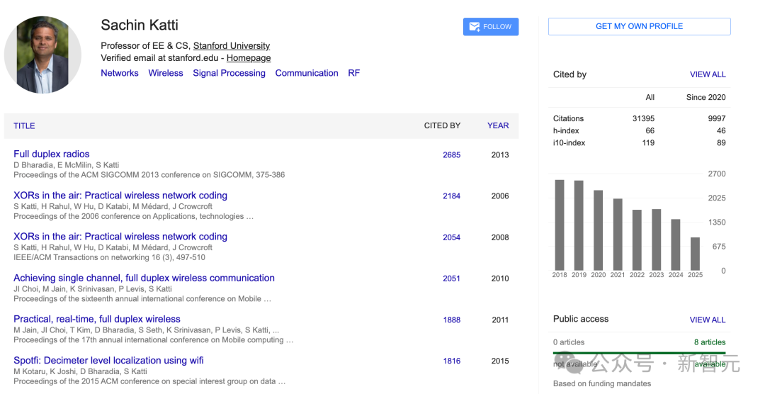Google Scholar显示,Sachin Katti曾发表多篇有影响力的论文,总被引数超3万次。