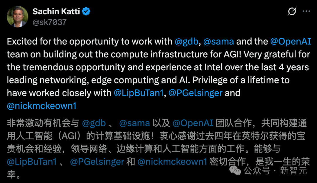 今天一早,英特尔CTO兼首席AI官Sachin Katti突然宣布离职。